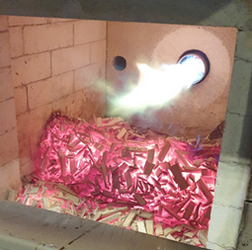 with filters and smoke abatement systems with B.A.T. for roasting ceramic components and PCB calcination to obtain an inert fraction - ash to be sent to the grinding, homogenization and / or melting phase also in rotary kilns without crucible.